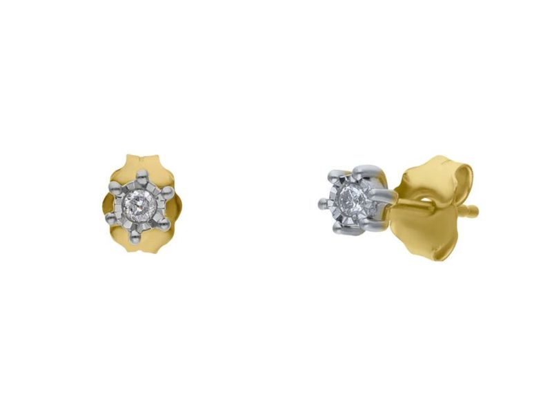 BROQUELES ORO AMARILLO PLATINADO 10K C/5 PTS DE DIAMANTE