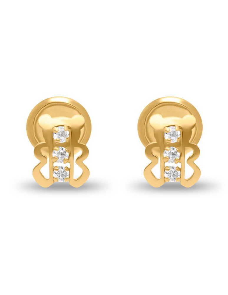 Broqueles Osito Oro Amarillo 14K Zirconias PRB-49-A