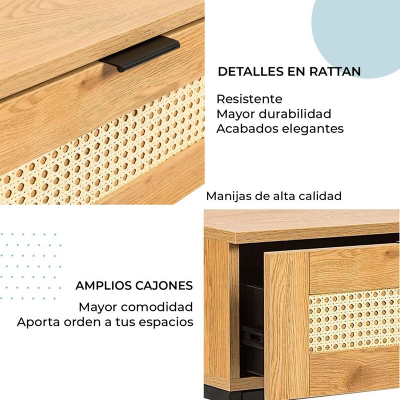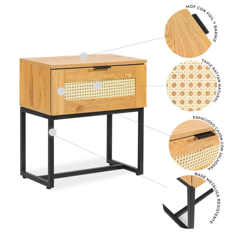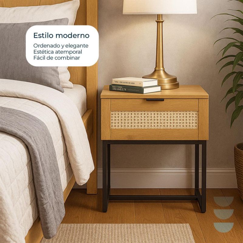 Buró 50x30 cm con Chapa Tipo Roble y Detalle en Ratán Natural para Recámara