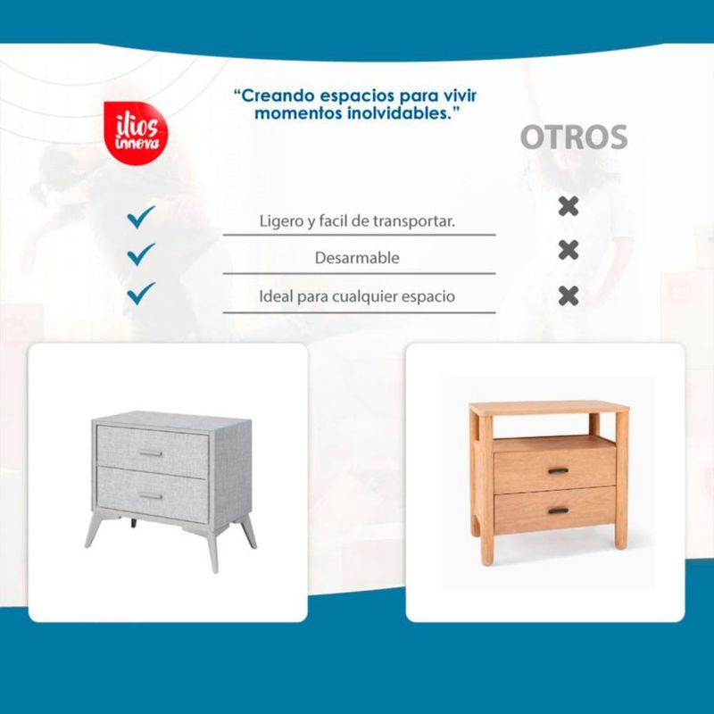 Buró de 2 Cajones forrado de tela Gris