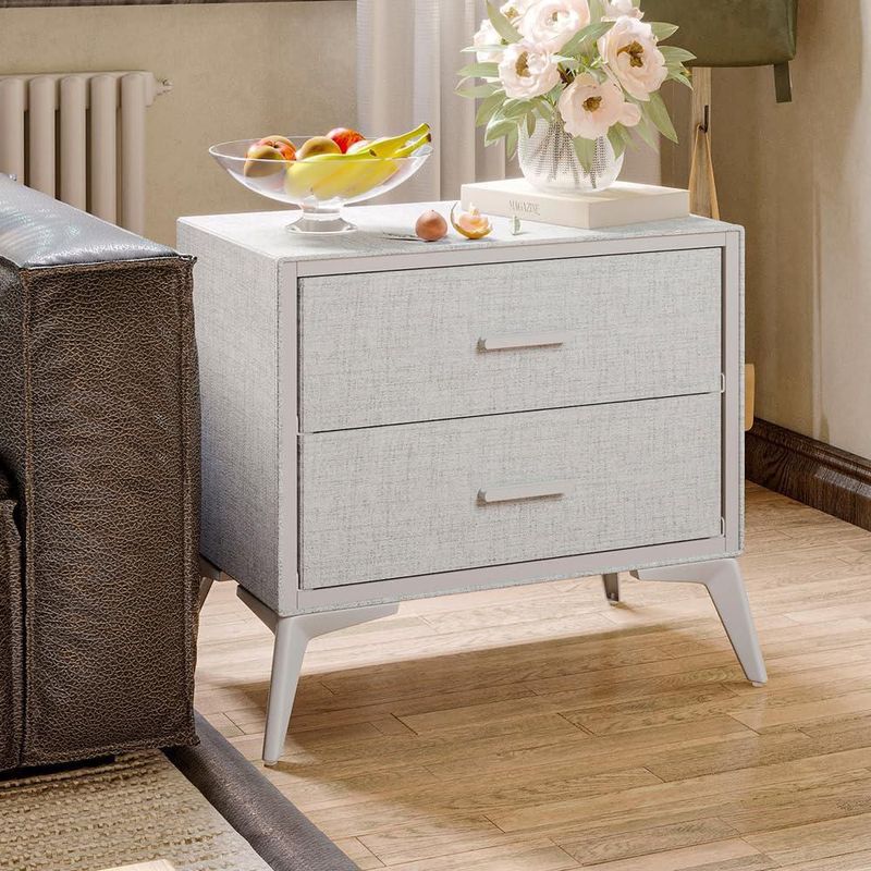 MueblesRecámaraBurósBuró de 2 Cajones forrado de tela Gris