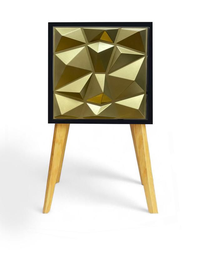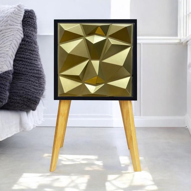 MueblesRecámaraBurósBuro Mesa De Noche Luz Led Iluminado Recamara Dorado C/negro