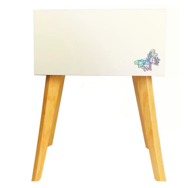 Buro Mesa De Noche Luz Led Niños Mariposa Recámara Beige