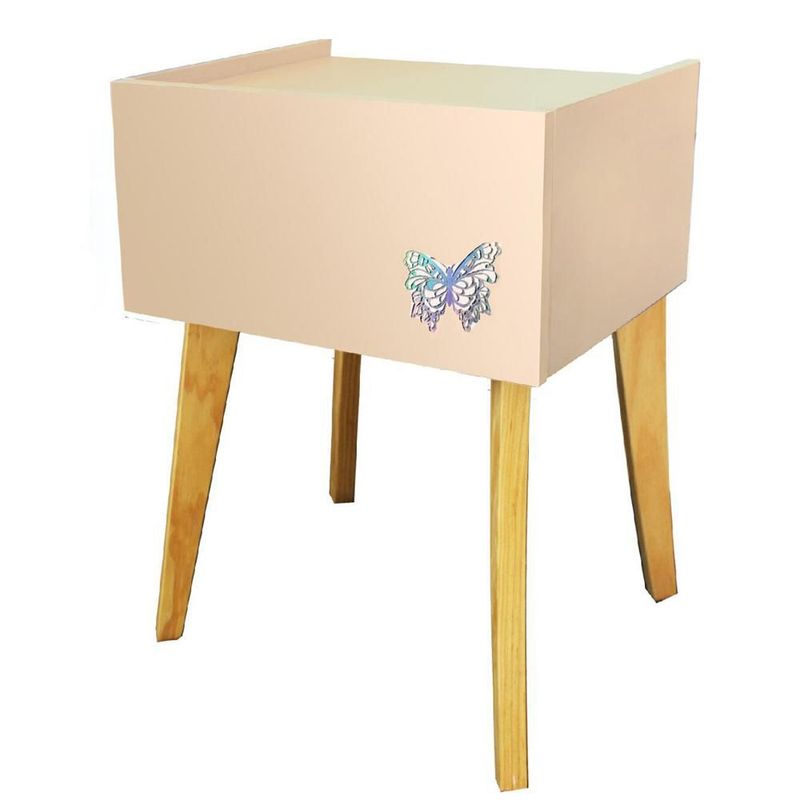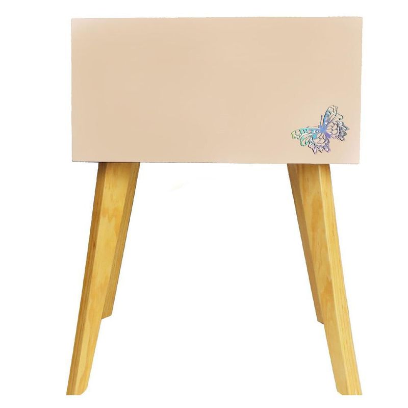 Buro Mesa De Noche Luz Led Niños Mariposa Recámara Durazno