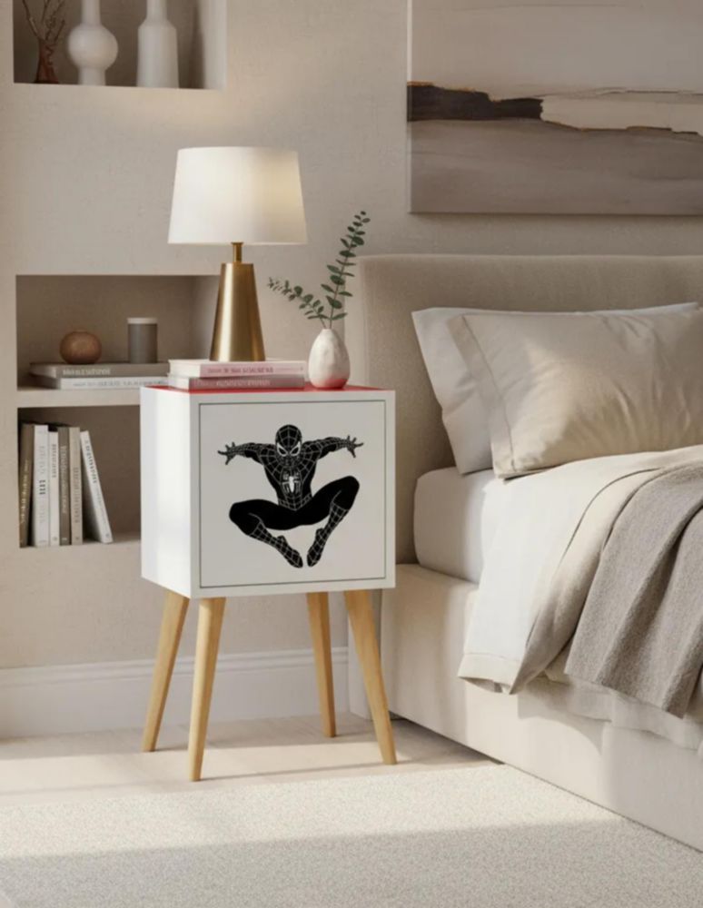 Buro Recamara Niños Spider Mesa Noche Organizador Juguetes Mate Rojo