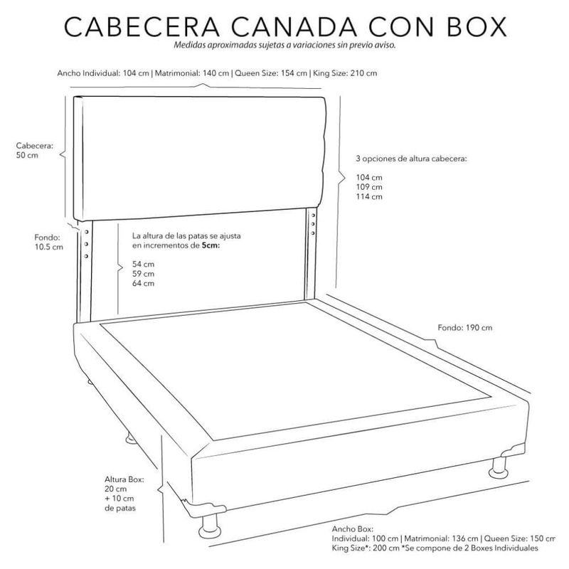 Cabecera Individual Dicasa Canada Gris Oxford + Box Dicasa Vita CZD