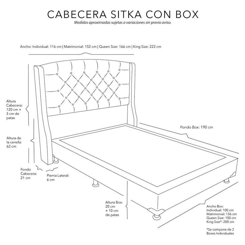 Cabecera King Size Dicasa Sitka Gris Orleans + Box Dicasa Orly CZD