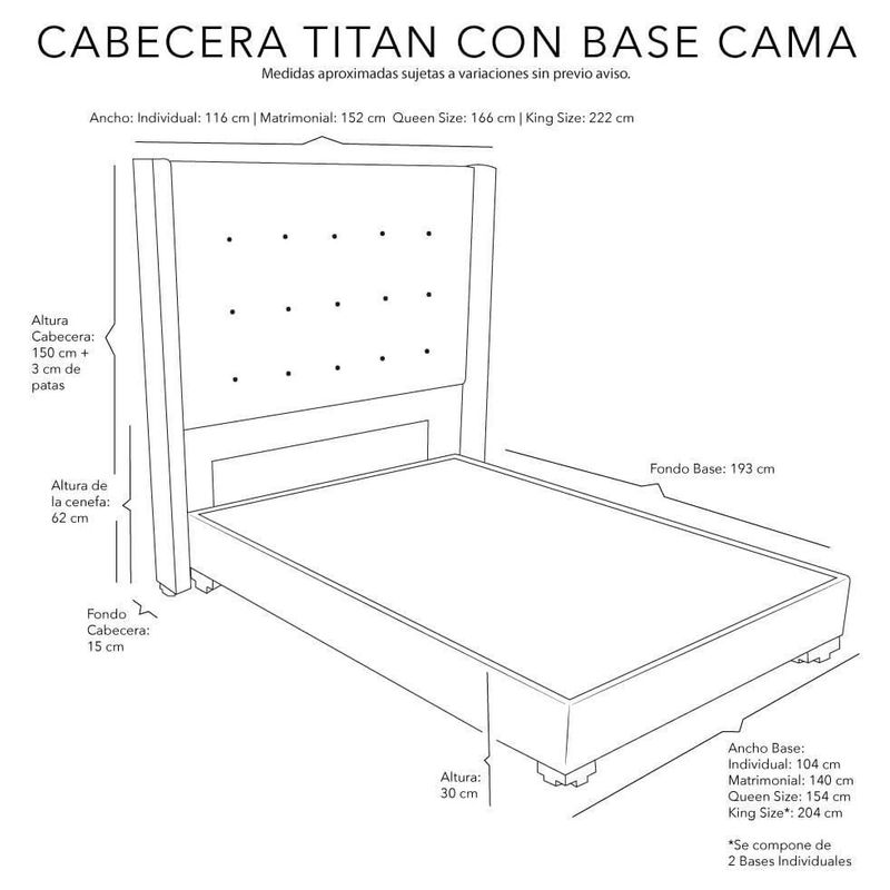 MueblesRecámaraBases de CamaCabecera King Size Dicasa Titan Beige Claro + Base Cama Colt CZD