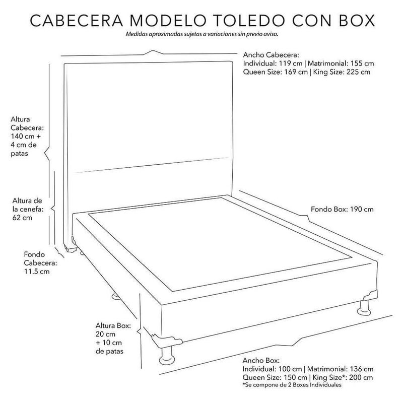 Cabecera King Size Dicasa Toledo Palo de Rosa + Box Dicasa Dante RGH