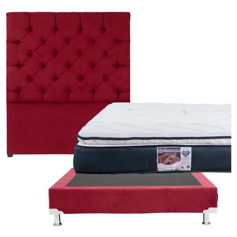 Colchones y BoxesSets de colchonesMatrimonialCabecera Matrimonial Capri Rojo + Box + Colchón Spring Air Mónaco CZD