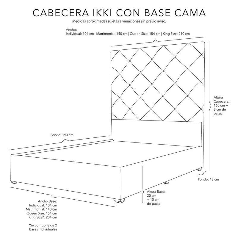 Cabecera Matrimonial Dicasa Ikki + Base cama Belt Negro CZD