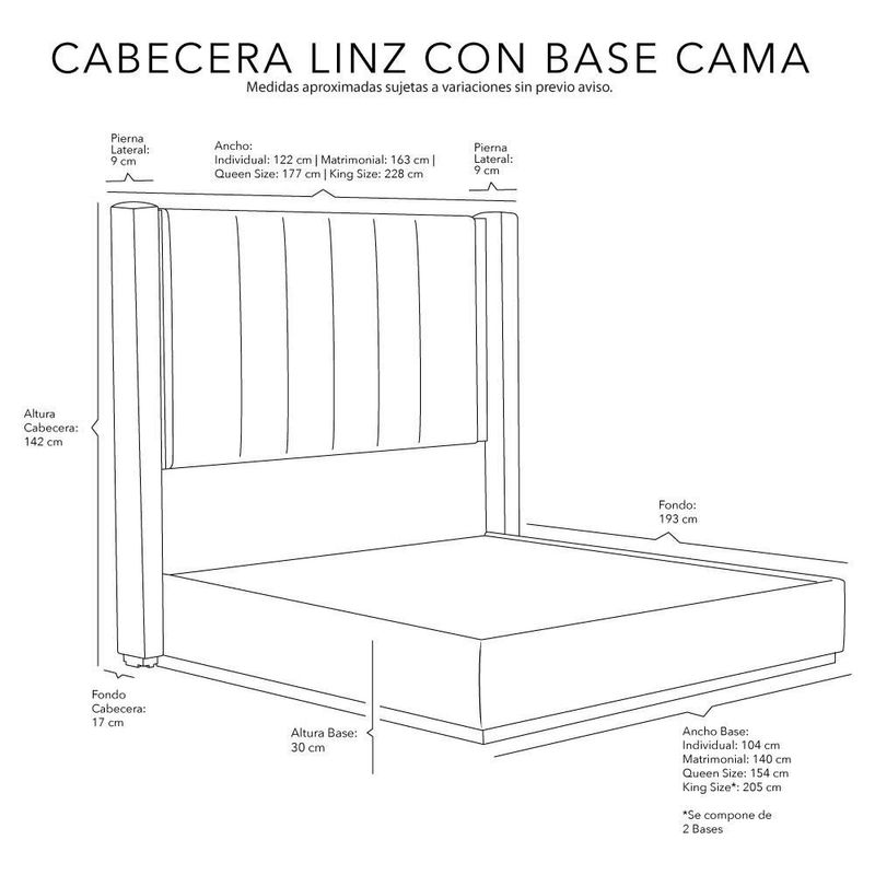 Cabecera Matrimonial Dicasa Linz+ Base Cama Negro CDZ