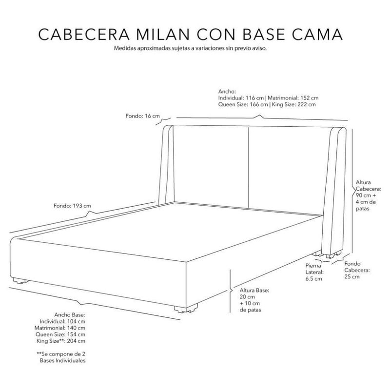 Cabecera Matrimonial Dicasa Milan Azul + Base Cama Dicasa Nizzo CZD