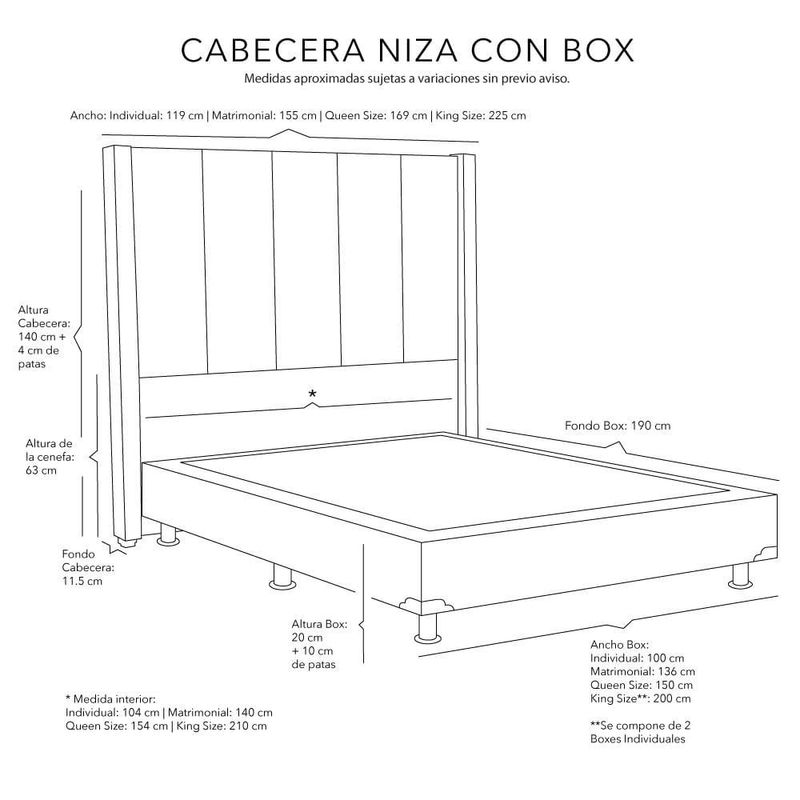 Cabecera Matrimonial Dicasa Nizza Azul Marino + Box Dicasa Blu CZD