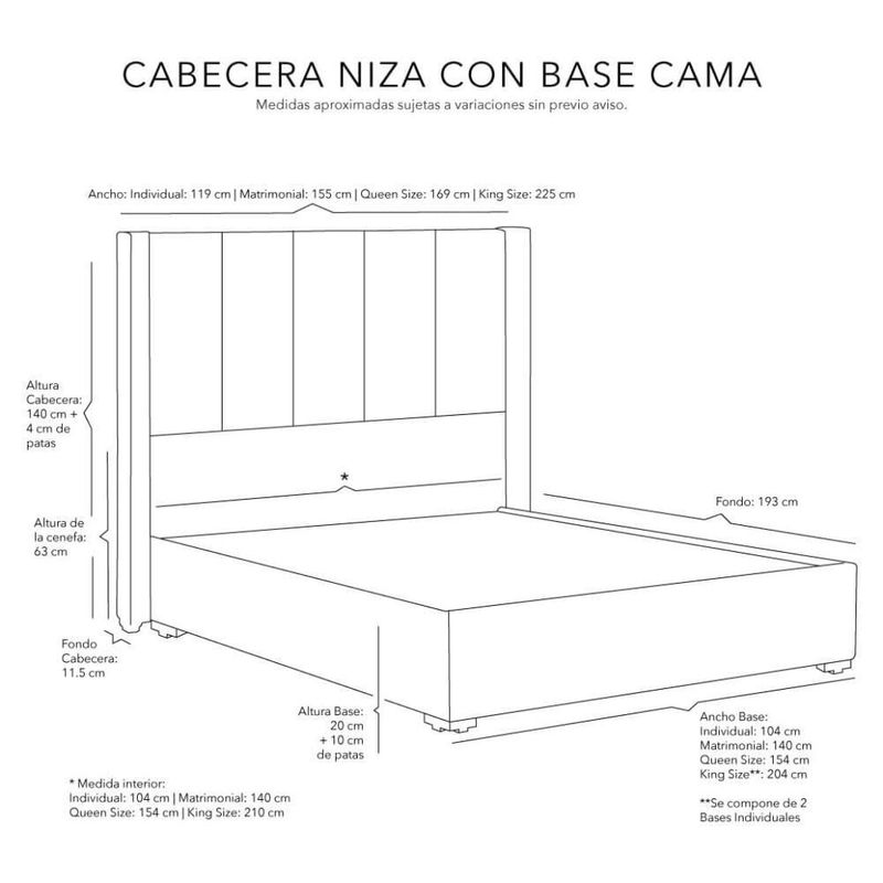 Cabecera Matrimonial Dicasa Nizza Negro + Base Cama Belt CZD
