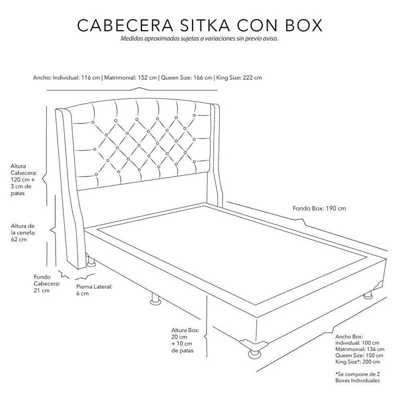 Cabecera Matrimonial Dicasa Sitka Rojo + Box Dicasa Red CZD