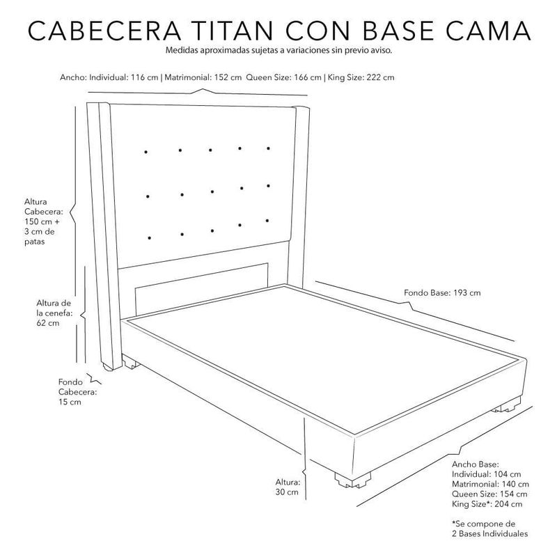 Cabecera Matrimonial Dicasa Titan Negro + Base cama Belt CZD