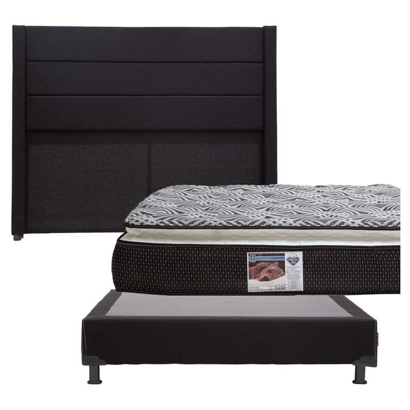 Cabecera Matrimonial Lugo Negro + Box + Colchón Spring Air Omega CZD
