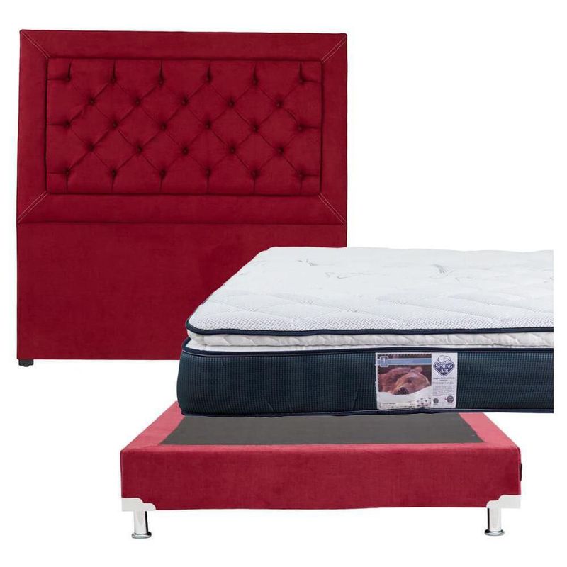 Cabecera Matrimonial Mary Rojo + Box + Colchón Spring Air Mónaco CZD