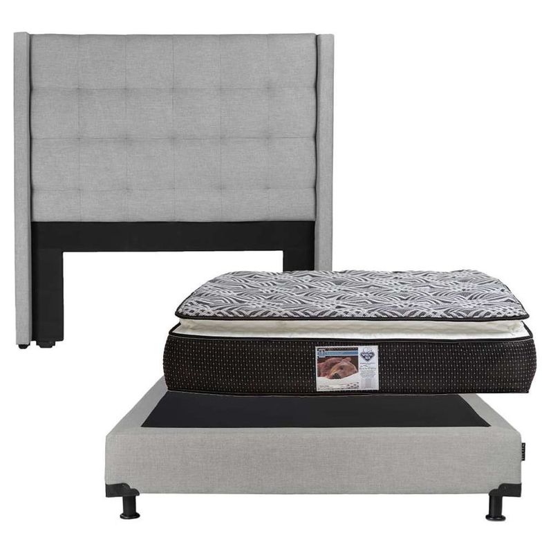 Cabecera Matrimonial Titan Gris + Box Belu + Colchón Spring Omega CZD