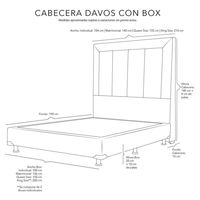 Colchones y BoxesSets de colchonesQueen SizeCabecera Queen Size Dicasa Davos Negro + Box Dicasa Belu CZD