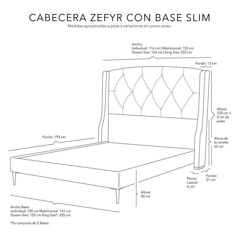 MueblesRecámaraRecámarasCabecera Queen Size Dicasa Zefyr Azul Marino + Base cama Slim CZD