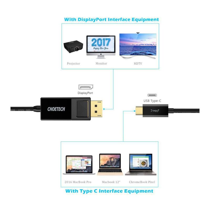 Cable Adaptador Tipo C a Display Port Choetech 4K 60 hz de 1.8 m