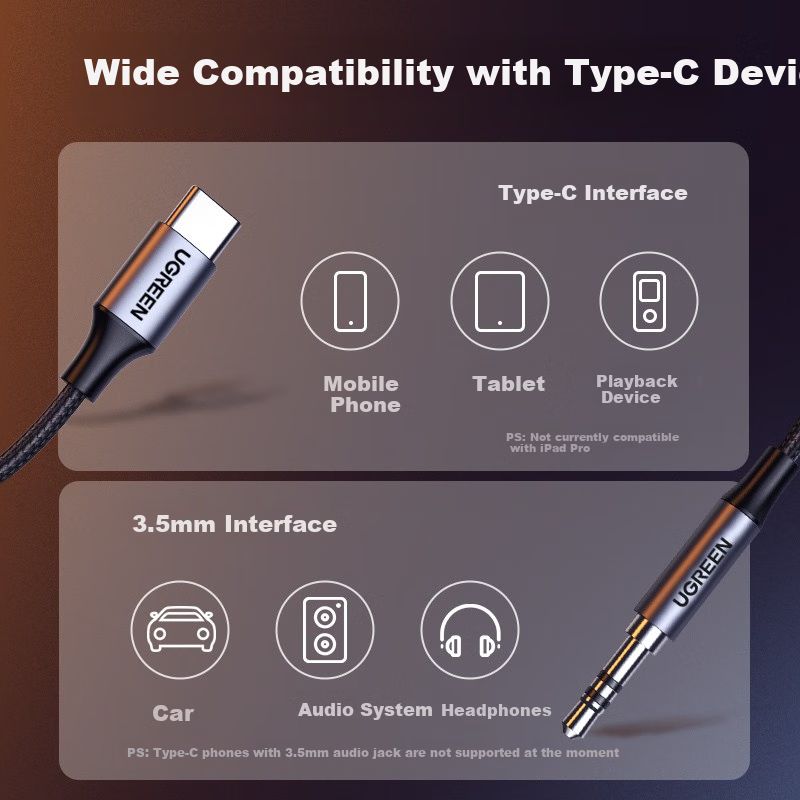 Cable Adaptador UGREEN Tipo C a 3.5 mm AUX Negro