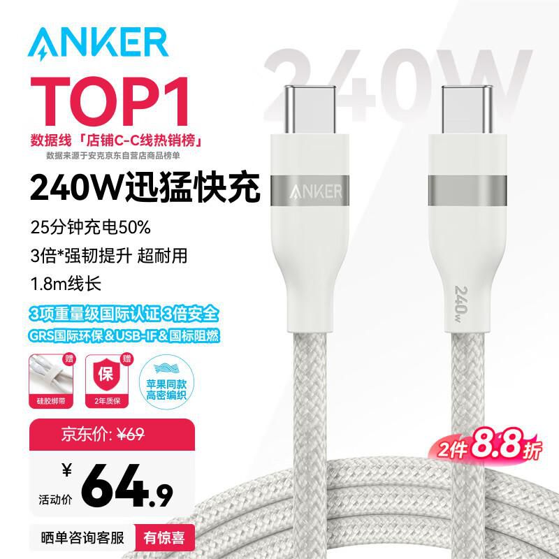 Cable ANKER A82E2 USB-C a USB-C Blanco 1.8 m 240W