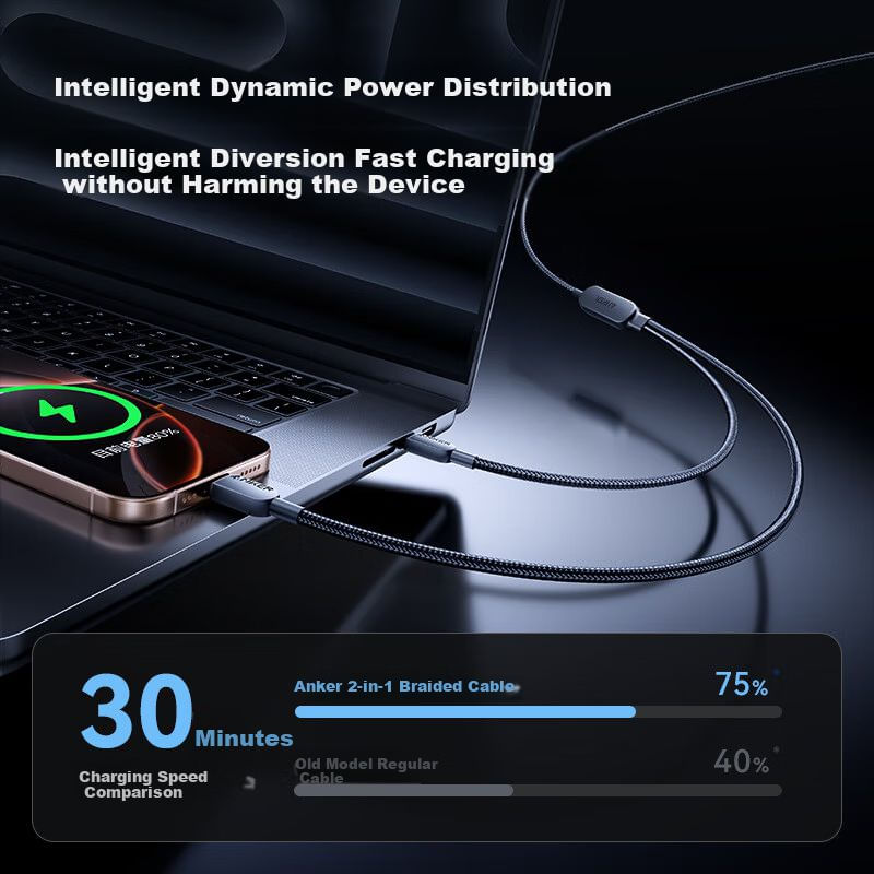 CómputoAccesorios y periféricosCables y AdaptadoresCable Anker A8895 Tipo C a Tipo C Doble Puerto Negro