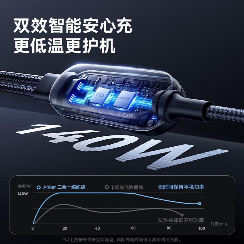 Cable Anker A8895 Tipo C a Tipo C Doble Puerto Negro