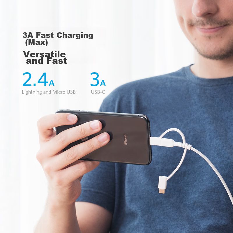 Cable ANKER PowerLine III 3-en-1 Lightning Type-C Micro USB Negro