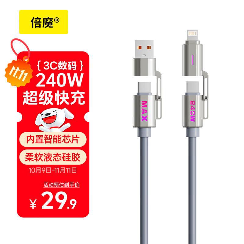 Cable Beimo 4 en 1 Datos y Carga 240W 1.5m Gris