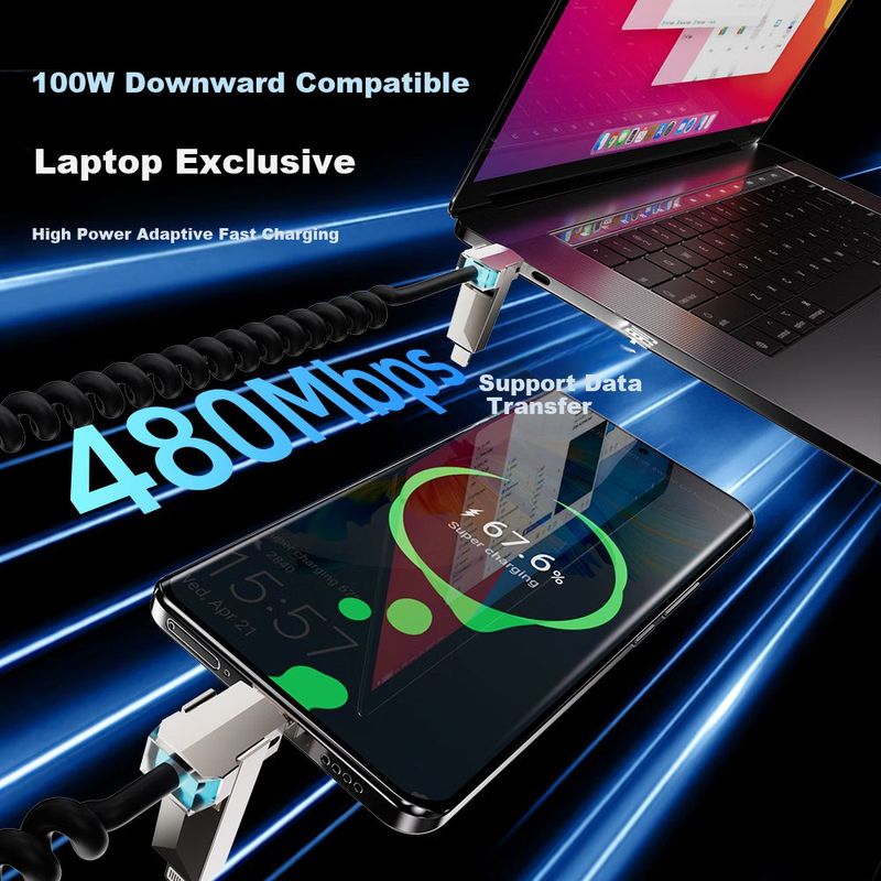 CómputoAccesorios y periféricosCables y AdaptadoresCable Beimo Retráctil 4 en 1 Carga Rápida 240W 2m Negro