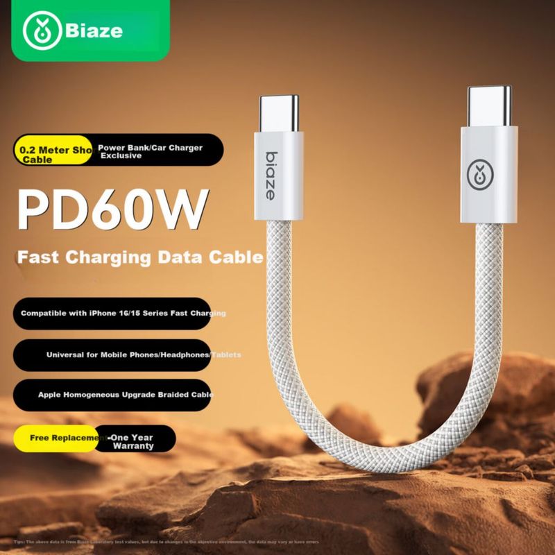 Cable BIAZE K122 Tipo C a Tipo C 60W Blanco 1.5 m
