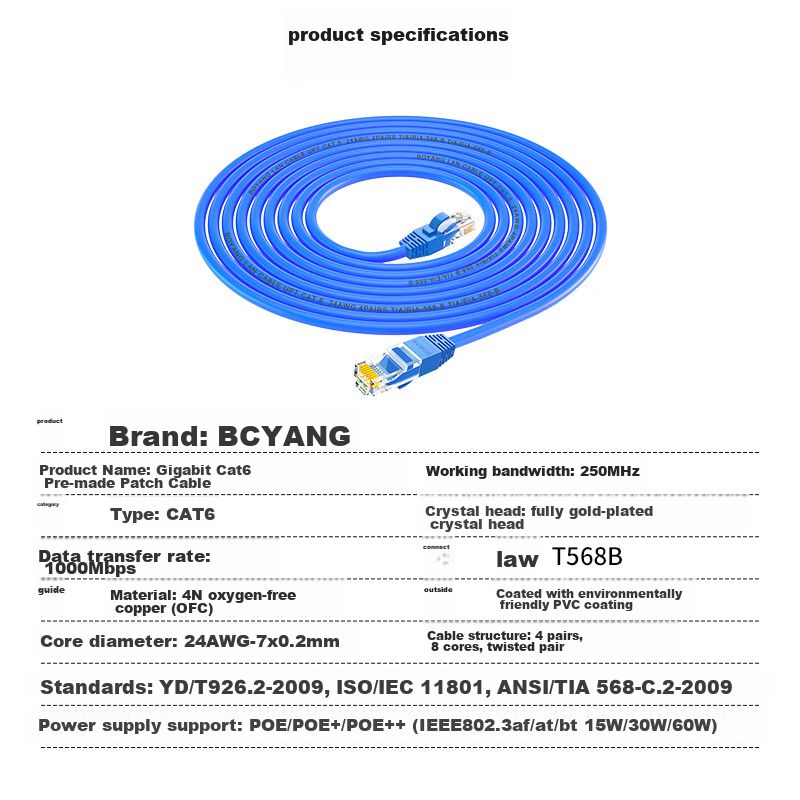 TelefoníaAccesorios para celularesCablesCable BOYANG CAT6 Patch RJ45 RJ45 Azul 10m