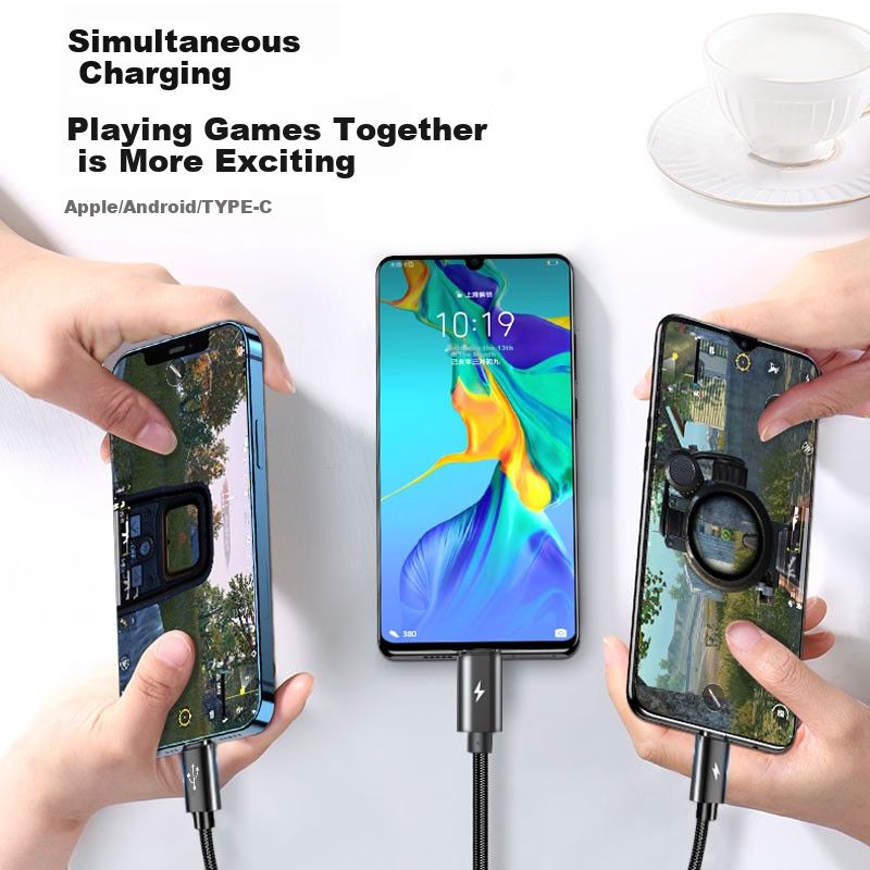 Cable cargador KOOLIFE 2021 USB Tipo A a Lightning Micro USB Tipo C Negro