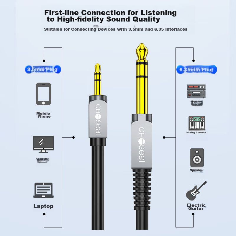 TelefoníaAccesorios para celularesCablesCable CHOSEAL QS3564 3.5 mm a 6.35 mm Plata Negro