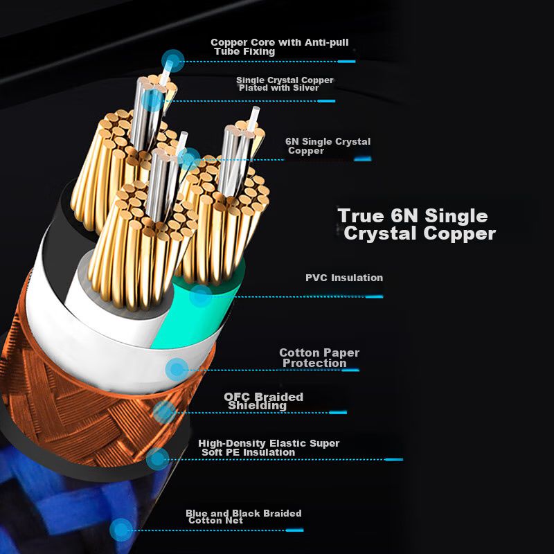 TelefoníaAccesorios para celularesCablesCable de Poder YYTCG Serie G2 Cobre Monocristalino Azul-Negro 1m