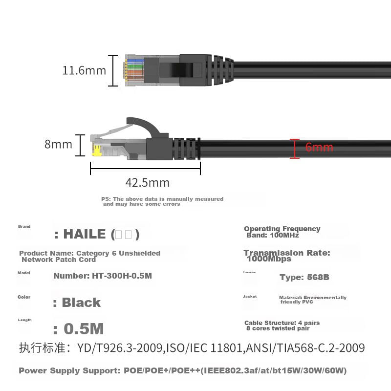 Cable de red HAILE HT-300C Cat 6 UTP Amarillo 1m