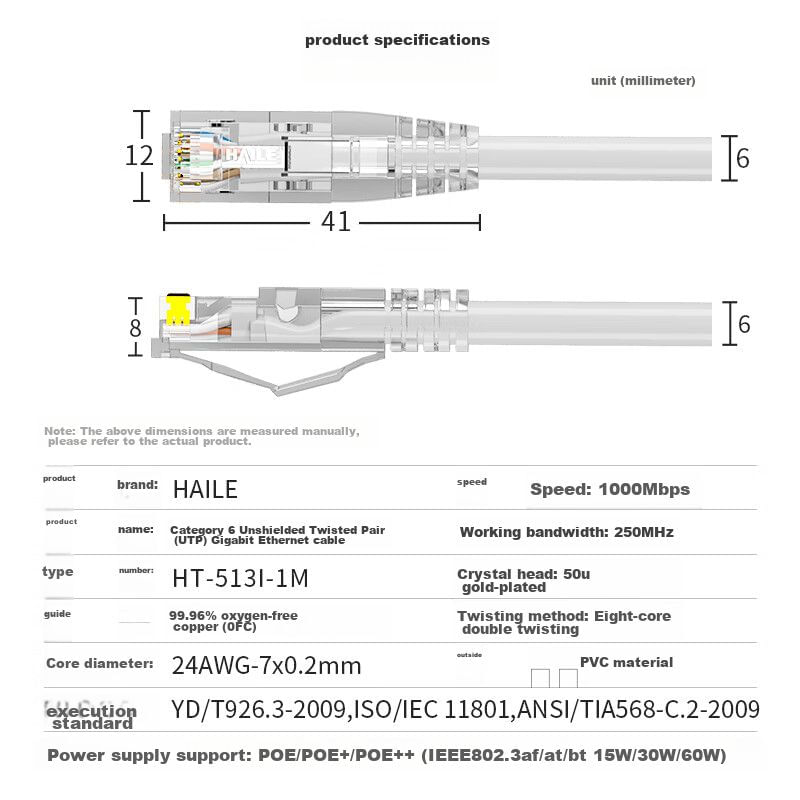 Cable de red HAILE HT-513D Categoría 6 10 m Transparente