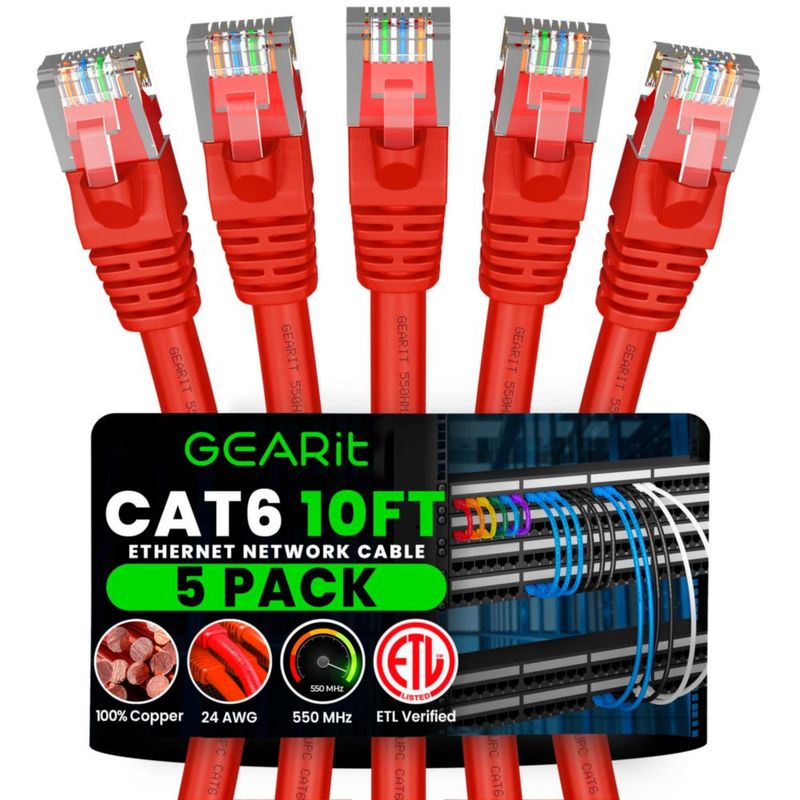CómputoAccesorios y periféricosCables y AdaptadoresCable Ethernet GearIt Cat 6 (paquete de 5 3 m) 10 Gbps RJ45 rojo