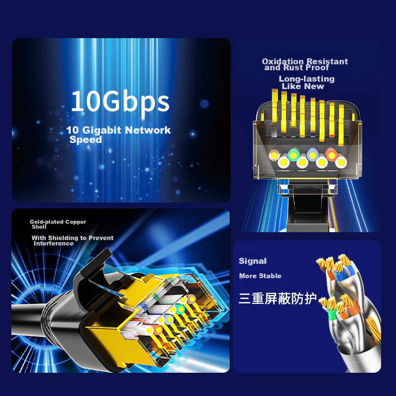 TelefoníaAccesorios para celularesCablesCable Ethernet ZLEUE Cat7 Blindado 1m Negro/Azul