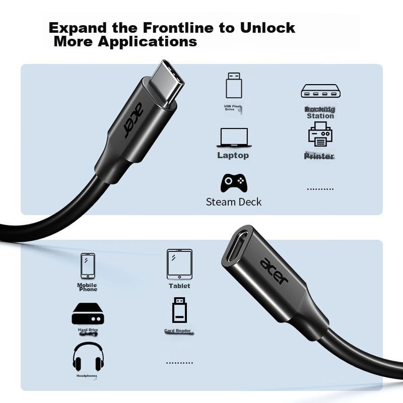 TelefoníaAccesorios para celularesCablesCable extensión Acer USB-C macho a hembra 0.5m Negro