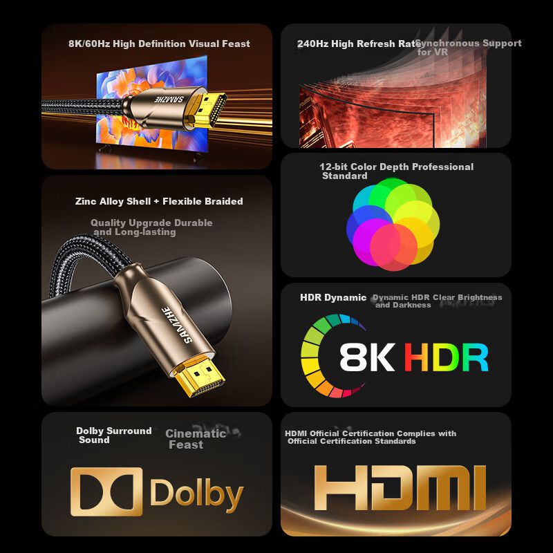 TelefoníaAccesorios para celularesCablesCable HDMI SAMZHE Ultra Alta Velocidad 2.1 1.5m Negro