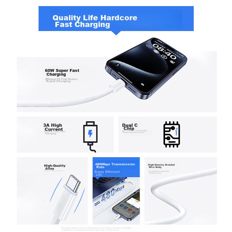 CómputoAccesorios y periféricosCables y AdaptadoresCable KOVOL USB-C a USB-C Blanco 1m Carga y Datos