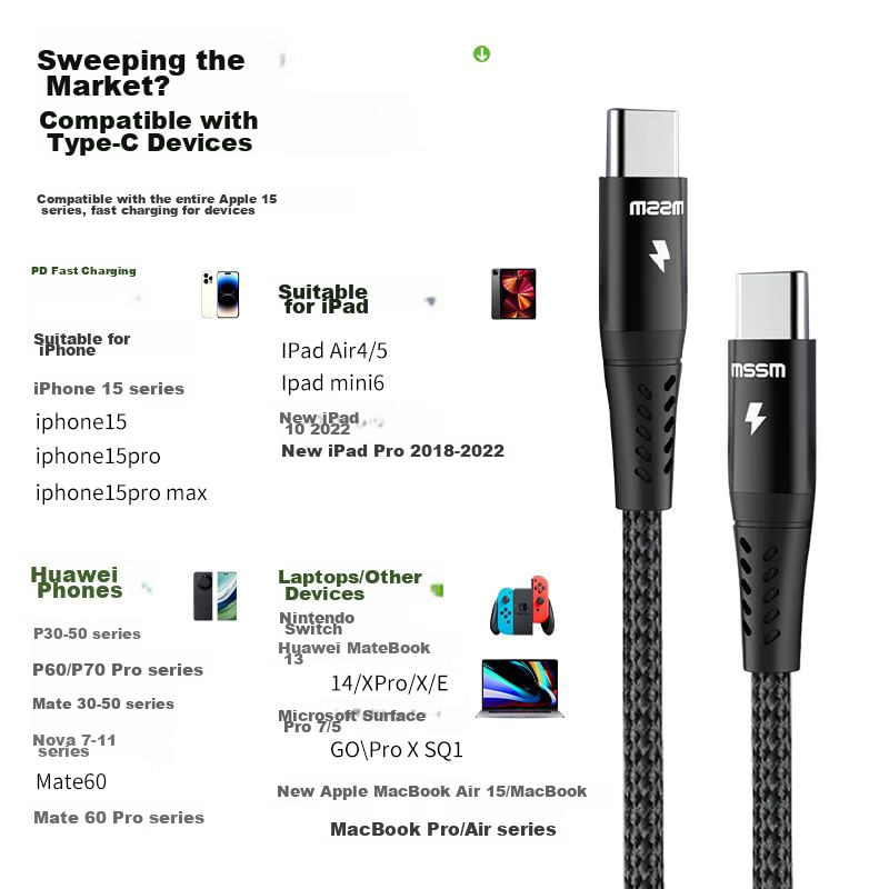 CómputoAccesorios y periféricosCables y AdaptadoresCable MSSM Apple 17 USB-C a USB-C PD 60W Negro