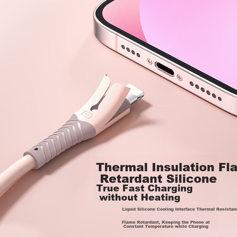 Cable Nengshi 3 en 1 Lightning Micro USB Tipo C Rosa Cerezo 1m