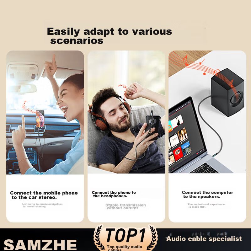 Cable SAMZHE AUX 3.5 mm a 3.5 mm Plata 2 m