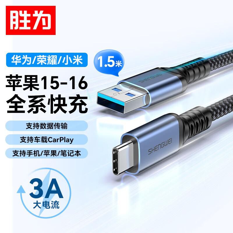 TelefoníaAccesorios para celularesCablesCable Shengwei USB 3.2 a USB-C 1.5m Negro